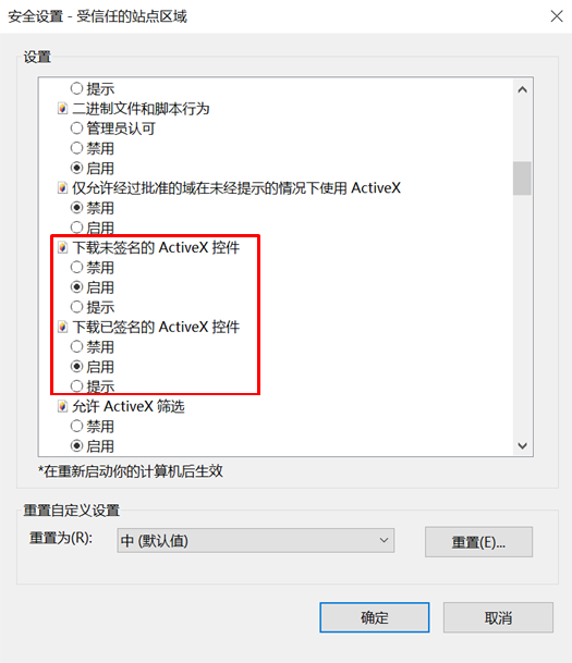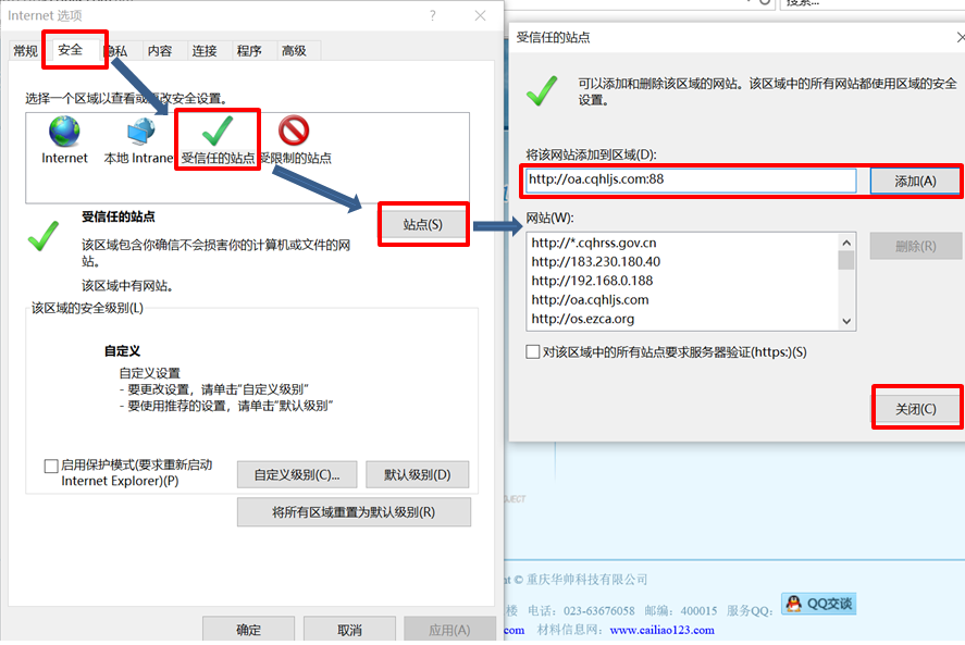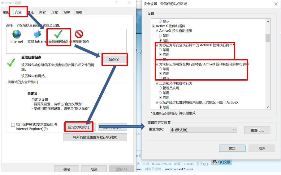步骤四:信任站点及允许控件运行