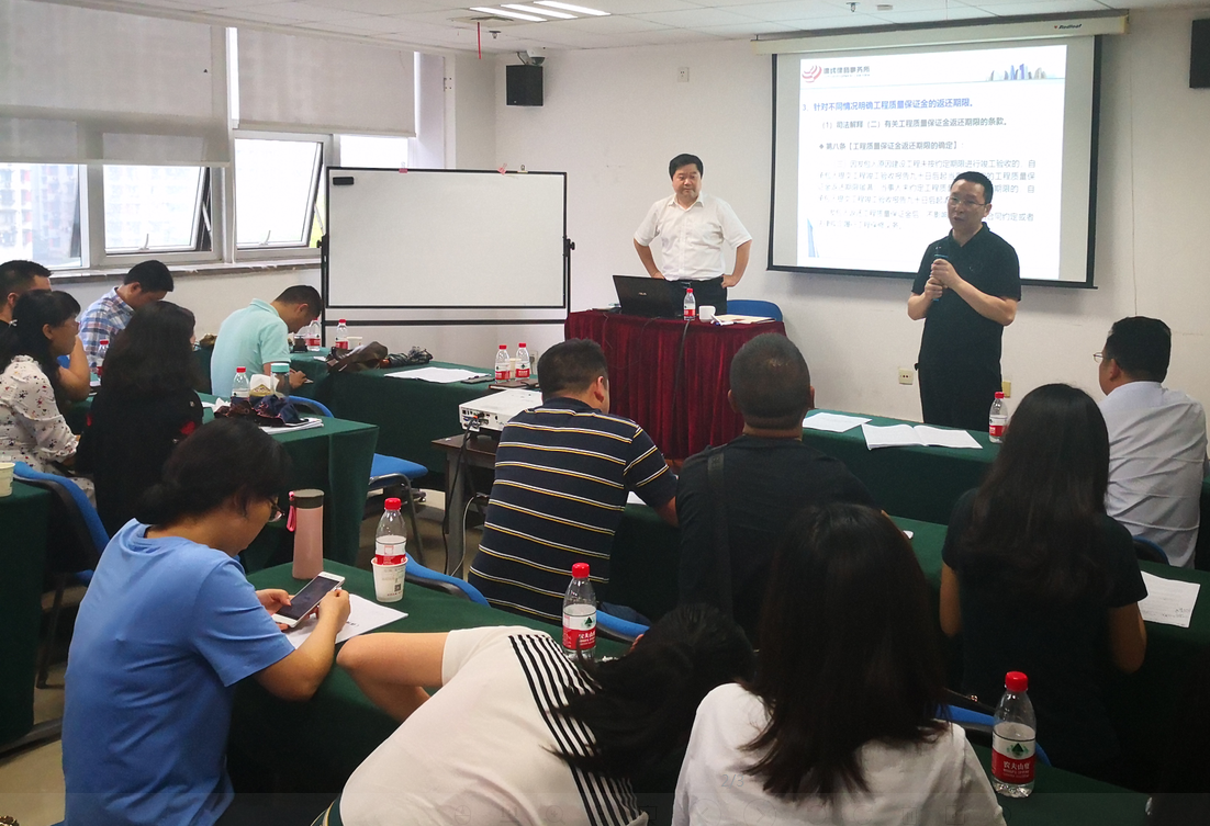 《建设工程施工合同解释二》于2019年2月1日起施行,新司法解释的施行给我们建筑施工企业带来了新的机遇和挑战,新形势下如何运用法律知识规避公司的法律风险,为公司创造更大的经济效益。重庆华力建设有限公司特别邀请了上海市建纬(重庆)律师事务所屈楚樵律师于2019年6月15日给公司管理层、项目部主要人员等做相关法律培训,总裁曾维军应邀参加。
